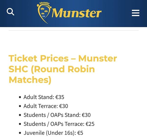 Reminder: Payment for Munster SHC tickets